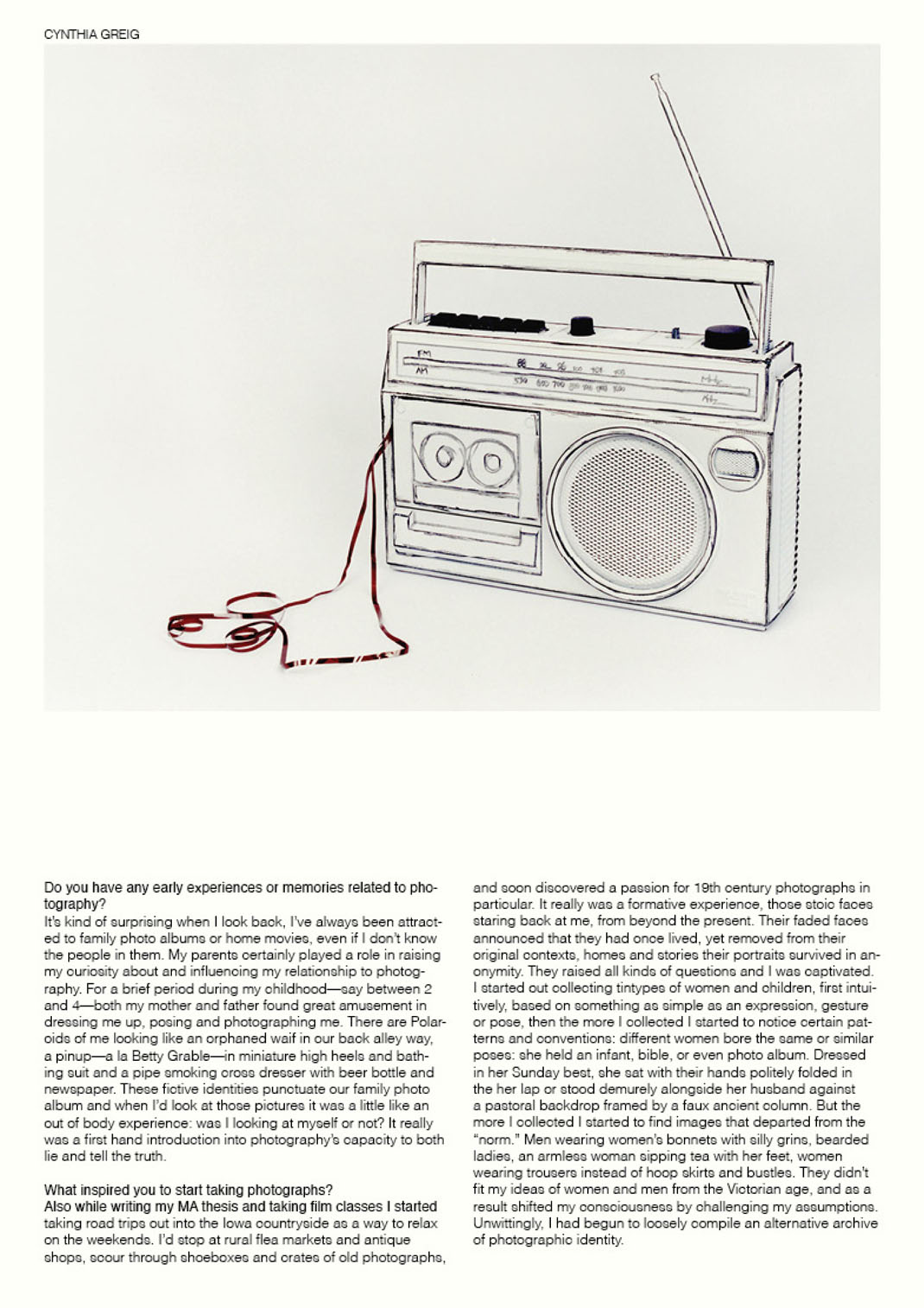 "Her photographs of familiar traditional still life arrangements are not unlike those that adorned my mother’s walls in each of our suburban houses, but whitewashed and stripped of most color, altering their dimension and straddling a world somewhere between painting and photography. I think she was generally floored at my recognition; much less the fact that I once considered showing her photographs until I realized she already had representation in Los Angeles. Greig is based in Detroit and I imagine getting exposure is somewhat tough in the world beyond."